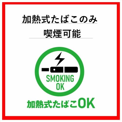 当店は加熱式たばこ限定でお席での喫煙が可能ですので、愛煙家の方も安心してご来店ください。当店自慢の絶品居酒屋メニューと美味しいお酒を嗜んだ後のお箸休めの至福の一服をお席にいながらごゆっくりと心ゆくまでお楽しみいただけます。